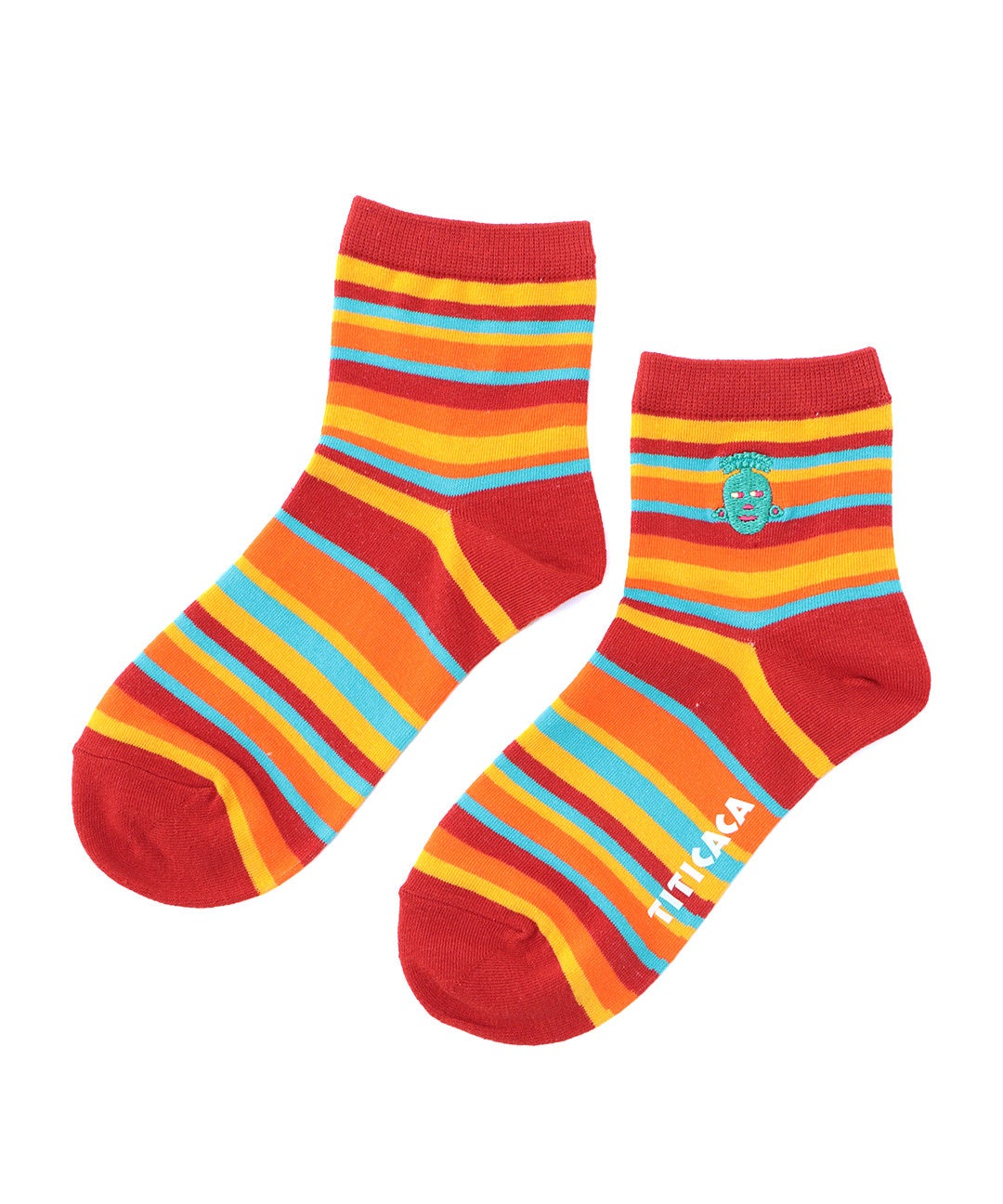 メキシコの明るく陽気な雰囲気を連想させるカラフルなボーダーをベースに、特別感のあるワンポイント刺繍が ポイントです。サイズ : 23-25cm
