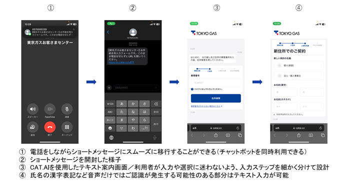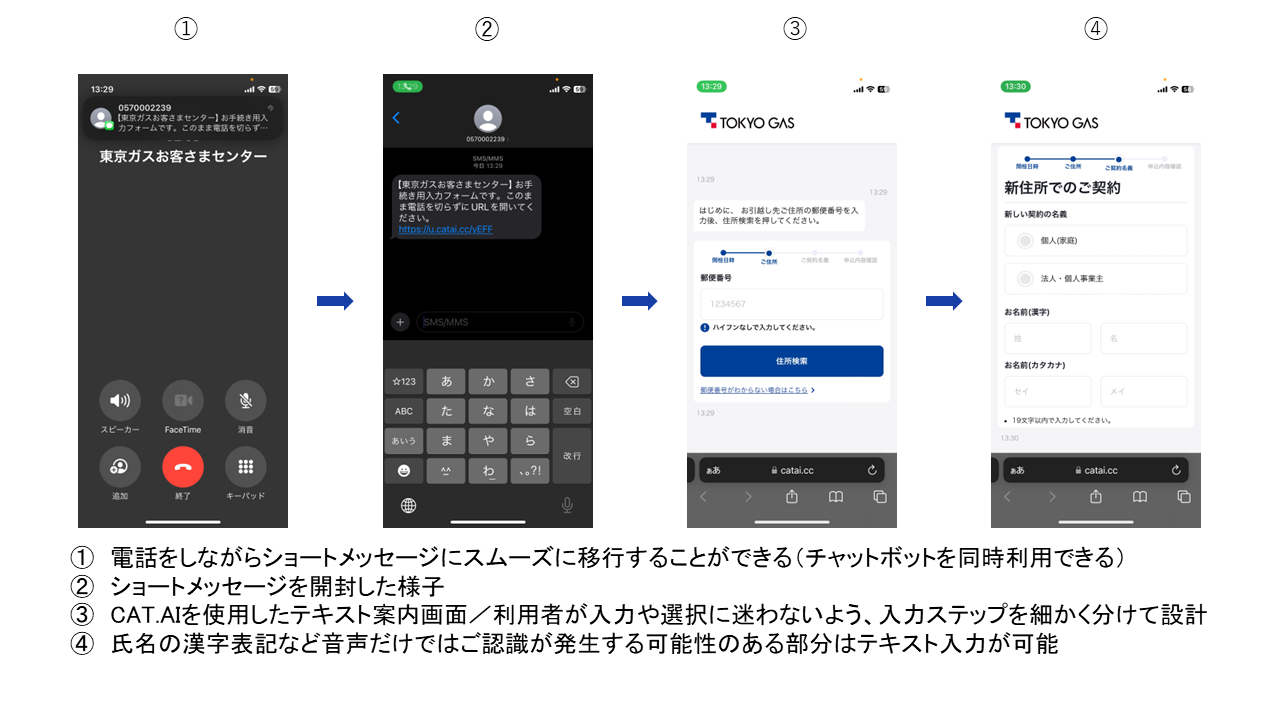 ガスの開閉栓対応には契約者名(漢字)やマンションなどの建物名の正確な聴取が求められます。そのため、チャットボット(テキスト)とボイスボット(音声)が1つのプラットフォームで同時に利用できる『CXマルチモードAI®』を搭載した「CAT.AI」が採用されました。CAT.AIは、音声とテキストを使ったナビゲーションの分かりやすさや、お客様の好みに応じた対応方法の選択が可能な柔軟性が評価されました。