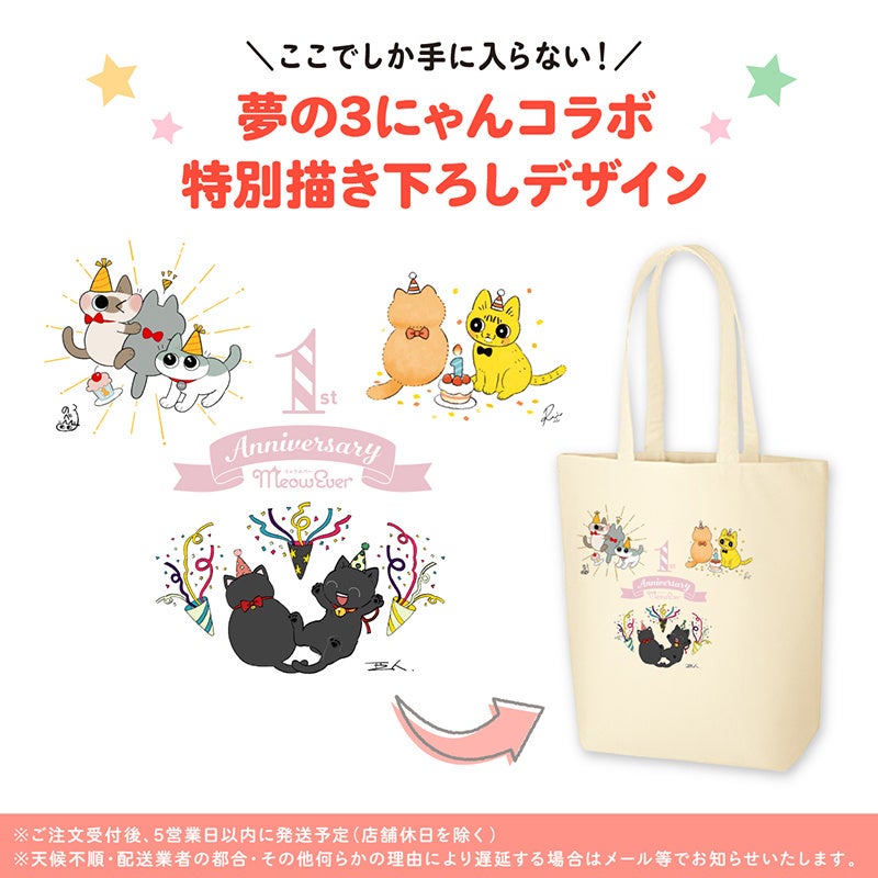 - コラボ企画①:【222個限定】3にゃんコラボ特別描き下ろしトートバッグセット販売