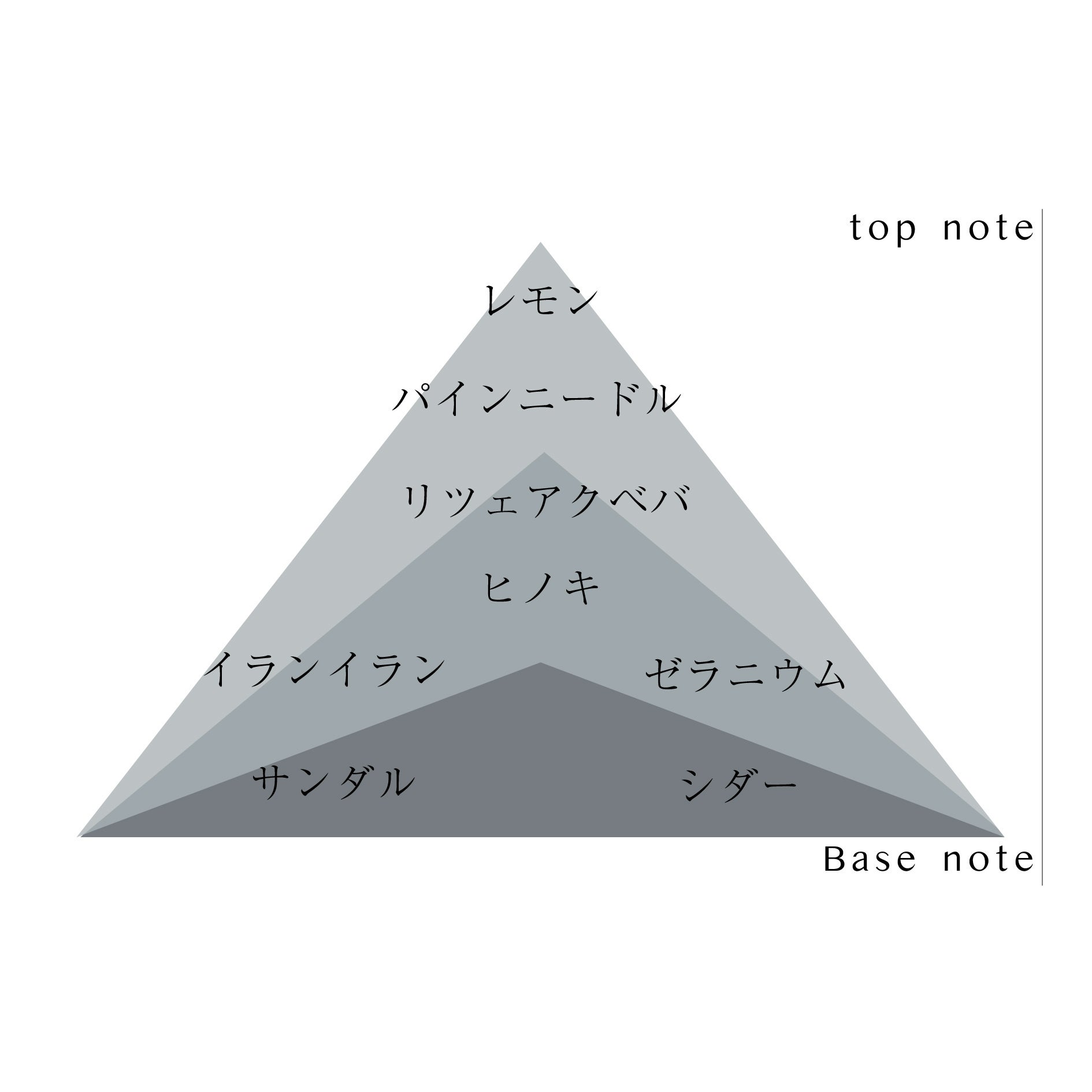 *レモン、パインニードル、リツェアクベバ、ヒノキ、イランイラン、ゼラニウム、サンダルウッド、シダーウッド