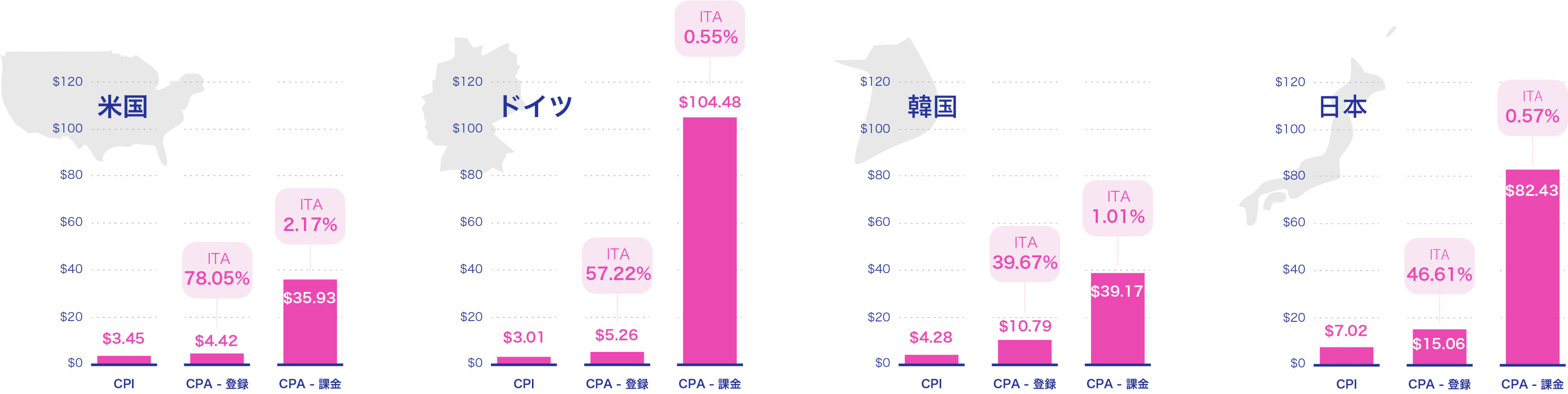- 国別の傾向 - 日本は各国と比較してインストール単価の高い傾向に