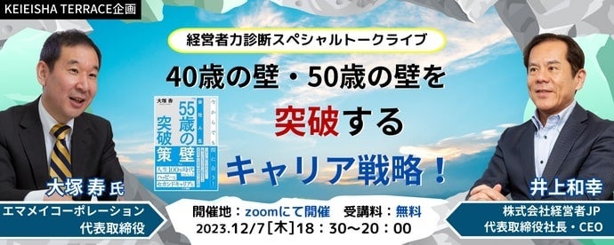 「経営者力診断スペシャルトークライブ:40歳の壁・50歳の壁を突破するキャリア戦略!」12月7日(木)18:30~開催