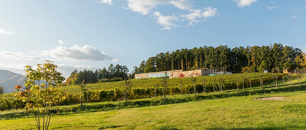 2019年7月、北海道余市郡仁木町にグランドオープンした複合型ワイナリーです。準限界集落となった仁木町の再生に向け、2014年に事業をスタート。2015年からは仁木・余市町の契約農家のぶどうを使ったワイン醸造を開始、2019年から自社畑のぶどうによるワイン造りも始まりました。33haの敷地に醸造所、ブドウ畑、ナチュラルガーデン、レストラン、宿泊棟を備えており、国内外の観光客を誘致することで仁木町を活性化することを目指しています。