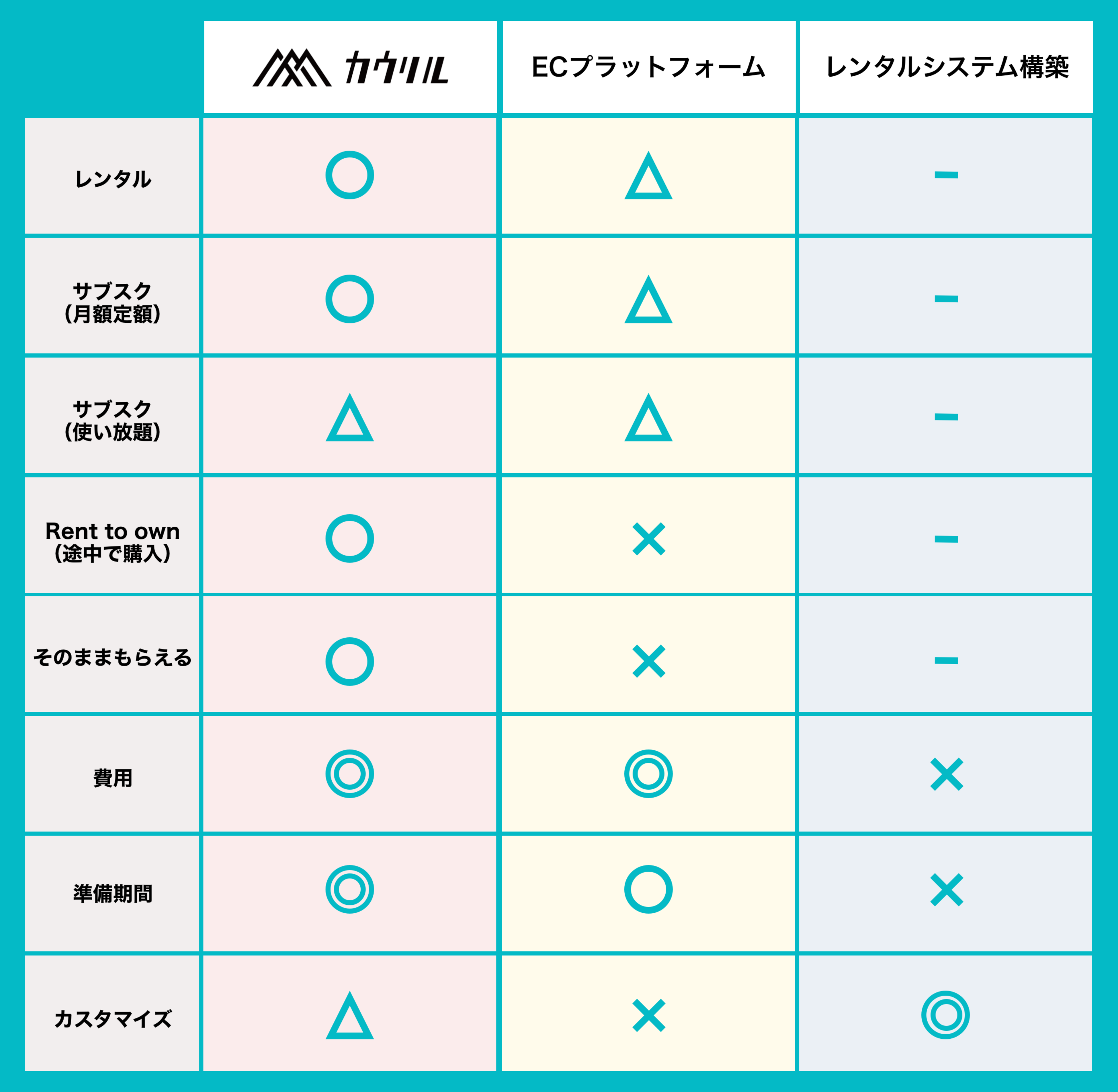 また、継続利用の途中で「差額でそのまま購入」することや、一定期間レンタルした後に「そのままもらえる」ことも出来るので、出店企業・消費者双方にとって最適なサービス設計が可能となります。