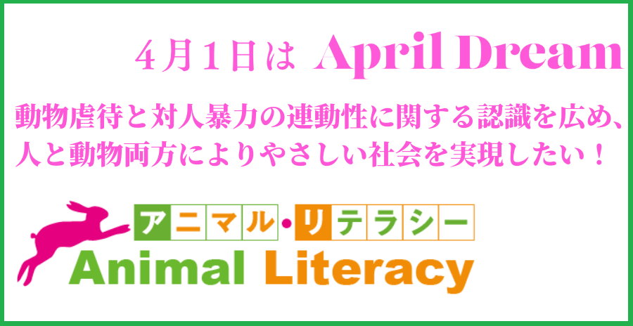 当法人は、4月1日を夢を発信する日にしようとするApril Dreamに賛同しています。このプレスリリースは一般社団法人アニマル・リテラシー総研の夢です。