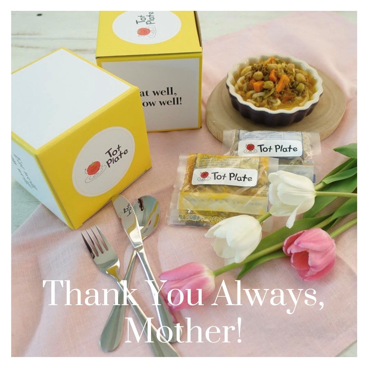 そんな忙しい親達に、「食事づくりが大変な日も素早く栄養がある食事を子どもに提供してほしい」という想いから、冷凍幼児食のTot Plateは開発されました。いつも食事づくりをがんばっているお母さんにちょっとでも楽をしてほしい、そんな気持ちを込めて母の日の割引キャンペーンを実施します。