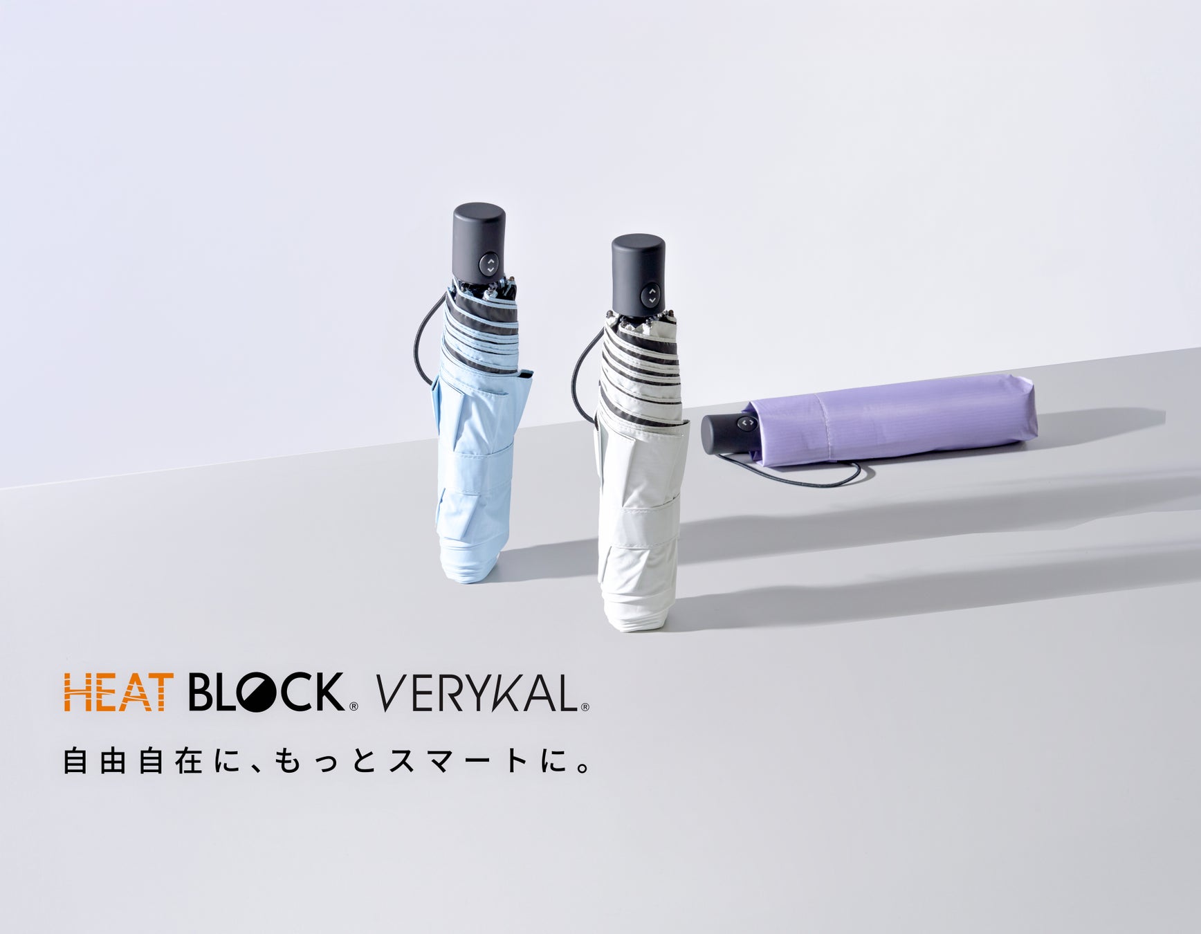 この度当社は、太陽光に含まれる幅広い光線を効果的にカットし、太陽熱を最大88.4%遮断するという遮光・遮熱性能**、そして軽量性・利便性を兼ね備えた晴雨兼用折りたたみ傘「HEATBLOCK® VERYKAL(ヒートブロックベリカル)」を開発しました。