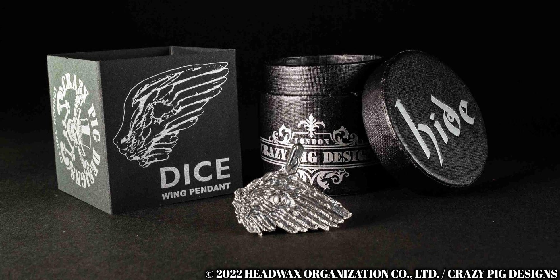 【hide x クレイジーピッグ】のコラボレーション・ジュエリー第2弾はhideの名曲『DICE』のシングルCDのジャケットに登場する翼がモチーフのスターリングシルバー製ペンダント『DICE WING PENDANT』です。2022年1月21日(金)正午よりクレイジーピッグ公式オンラインストアにて発売します。