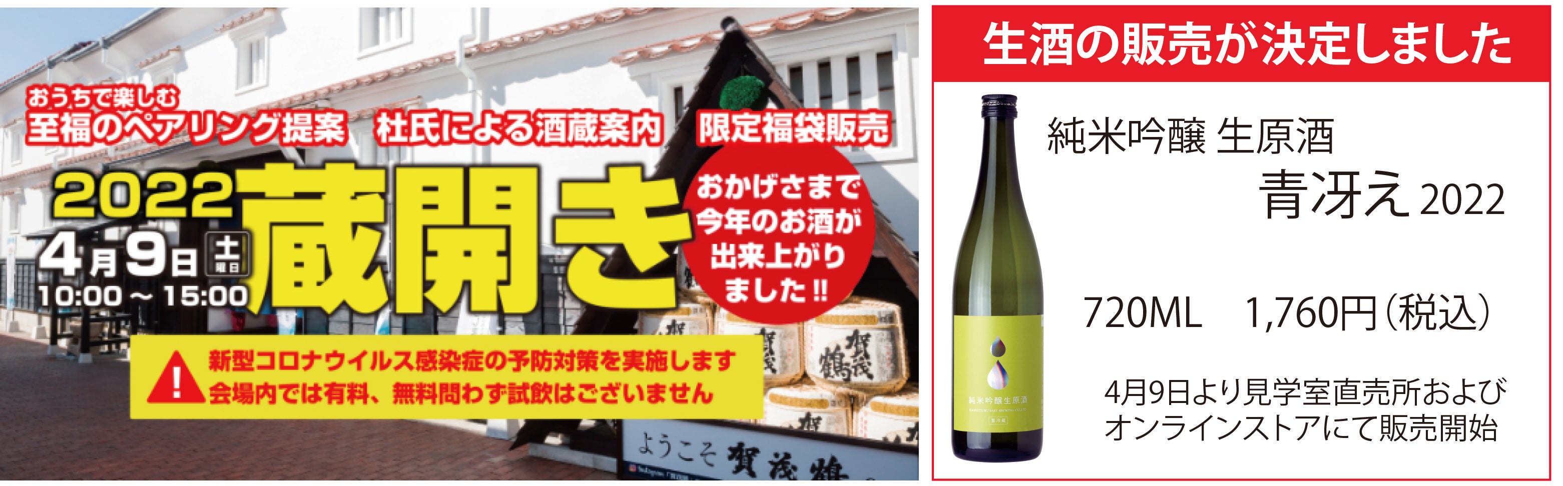 賀茂鶴酒造(株)(広島県東広島市西条、代表取締役社長:藤原昭典)は2022年4月9日(土)、「蔵開き」を開催します。見学室直売所では、先着200名様に酒粕(500g)を無料でプレゼント。