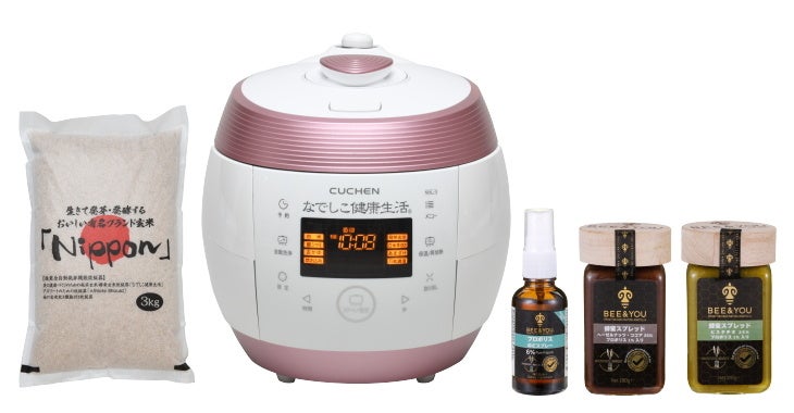 コロナ禍で一時的に出荷停止だった「なでしこ健康生活®」の販売再開記念として「生きて発芽・発酵する有名ブランド玄米」3㎏と「BEE & YOU プロポリス入りのどスプレー」1本、「BEE & YOU 蜂蜜スプレッド」2瓶を、プレゼント致します。(数量限定となります)