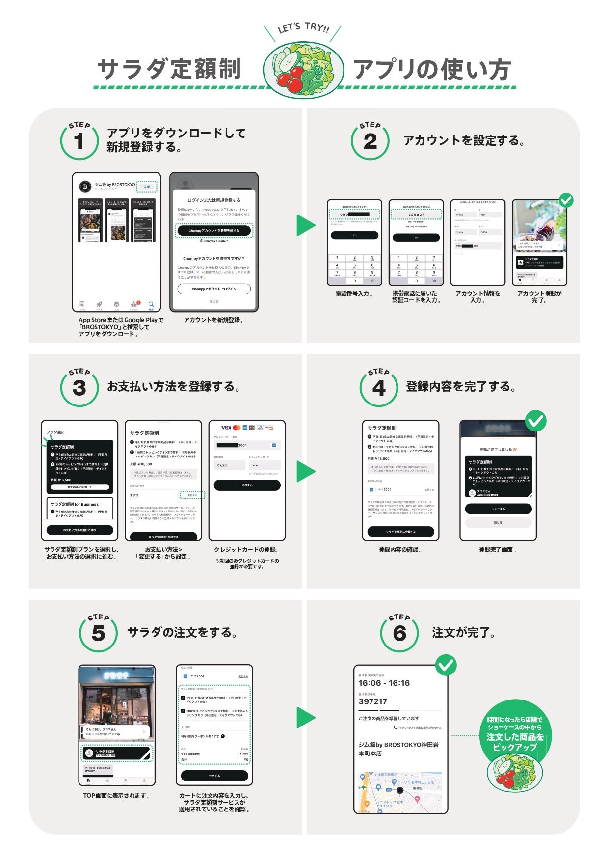 そして、このたびフードデリバリーサービス「Chompy(チョンピー)」を提供する株式会社Chompy(本社:東京都目黒区、代表取締役:大見周平)の公式アプリ開設サービス「Chompy」を導入することにより、いままでテイクアウト専用サービスだったサラダ定額制をデリバリーで提供できるようになりました。