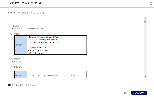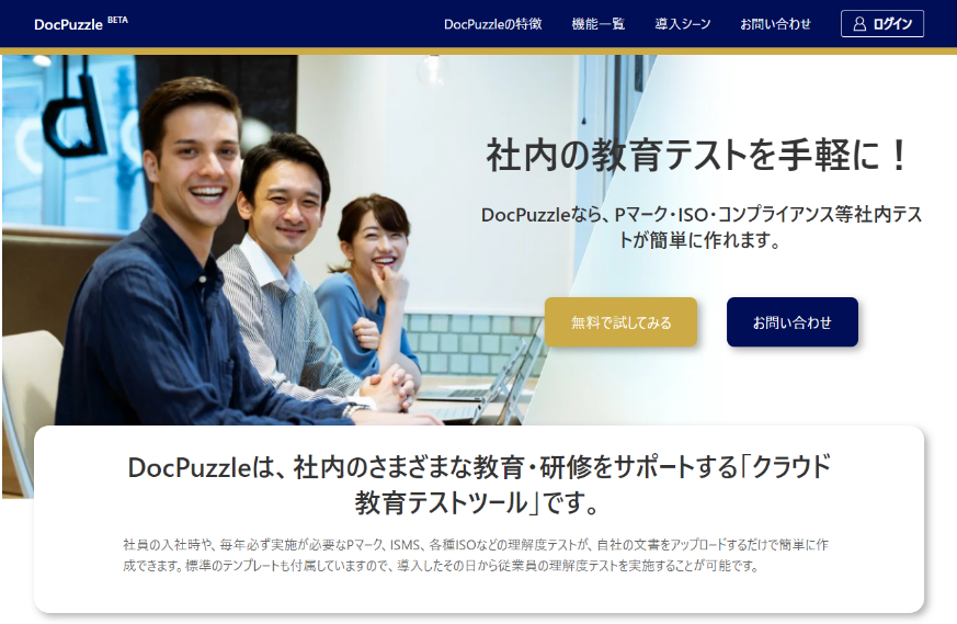 ーDocPuzzle(ドックパズル)なら、Pマーク・ISO・コンプライアンス等社内テストが簡単に作れますー