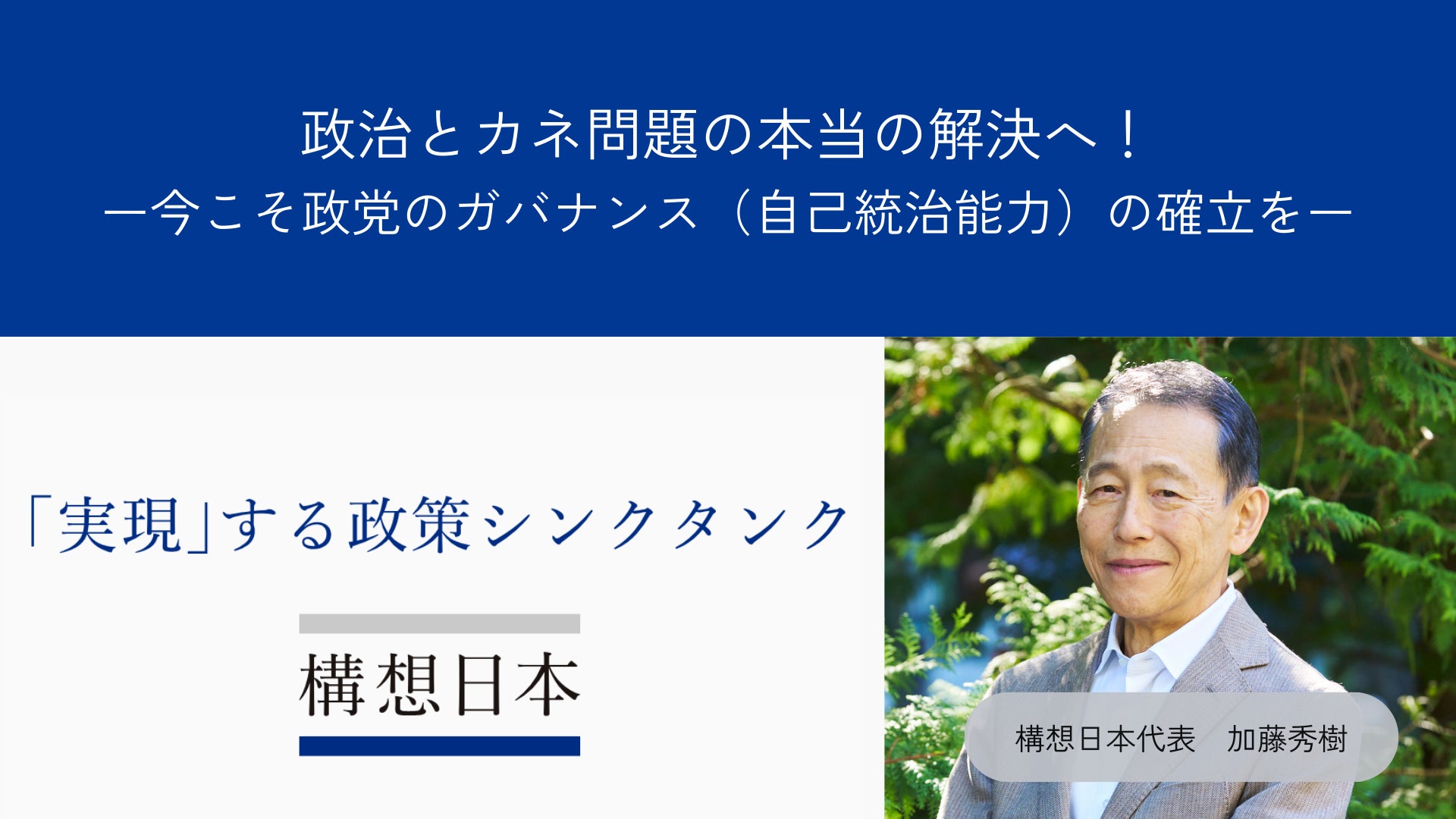 一般社団法人 構想日本(東京都千代田区/代表:加藤秀樹)は、政治とカネ問題の解決には、政党のガバナンス(自己統治能力)の確立が不可欠であると考え、「政党法」の制定を提言します。