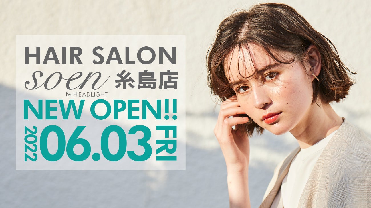 ヘアサロン「soen by HEADLIGHT 糸島店」が6月3日(金) JR筑肥線「加布里駅」徒歩11分・国道202号線沿いの1階にオープン!
