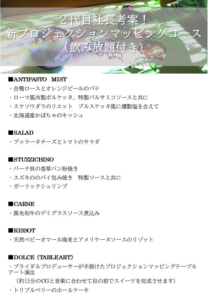 ④2代目社長考案!新プロジェクションマッピングコース(飲み放題付き)30000円