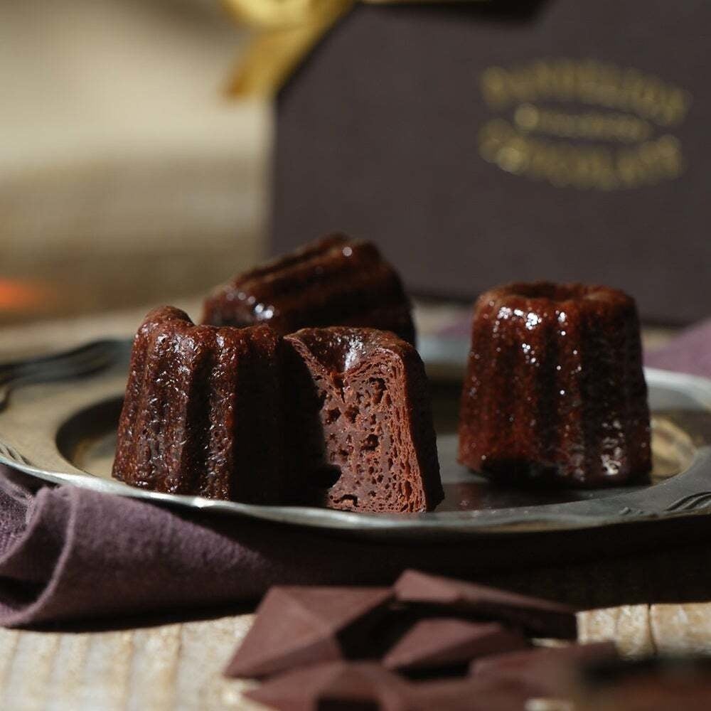 ドミニカ共和国産カカオ豆のチョコレートを使用したカヌレ。香りづけには同じくドミニカ共和国産のラム酒を使用しています。チョコレートのインパクトある味わいの中に、カカオ豆由来の爽やかなニュアンスとお酒の香りが心地よく感じられ、一口目から余韻まで、たっぷりと楽しめるカヌレに仕上がっています。ダークブラウンの上品なパッケージで、バレンタインデーの贈り物にもふさわしい商品です。