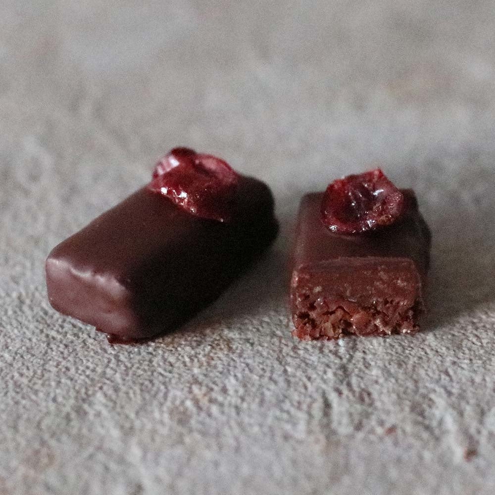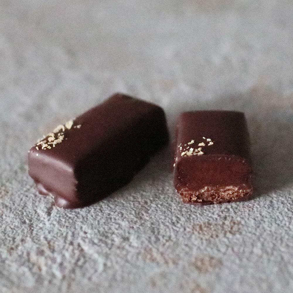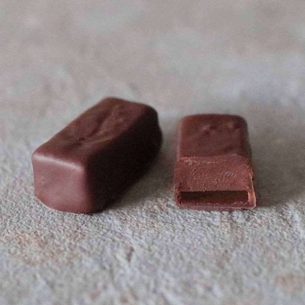 台湾紅茶「蜜香」と「紅玉」で香りづけした生クリームをガナッシュに使用し、サルタナレーズンのようなフルーティーな酸味が特徴のインド産カカオのチョコレートと合わせた、芳香で香り高いボンボンショコラです。