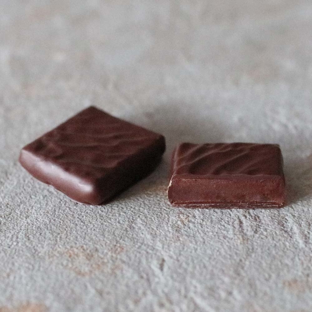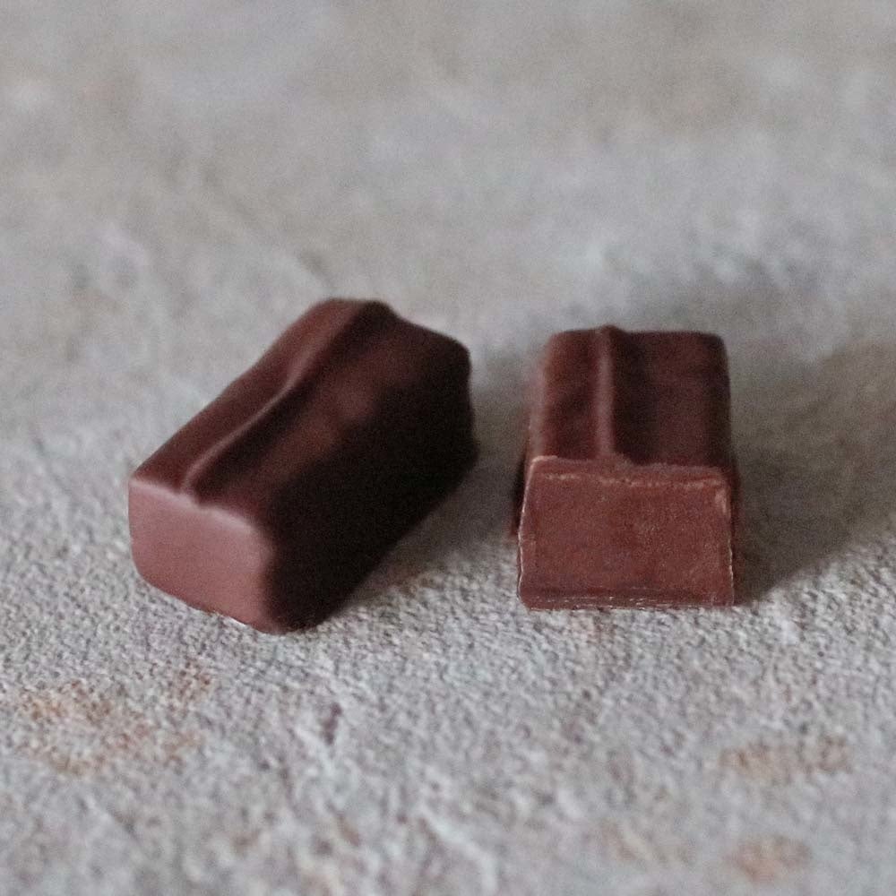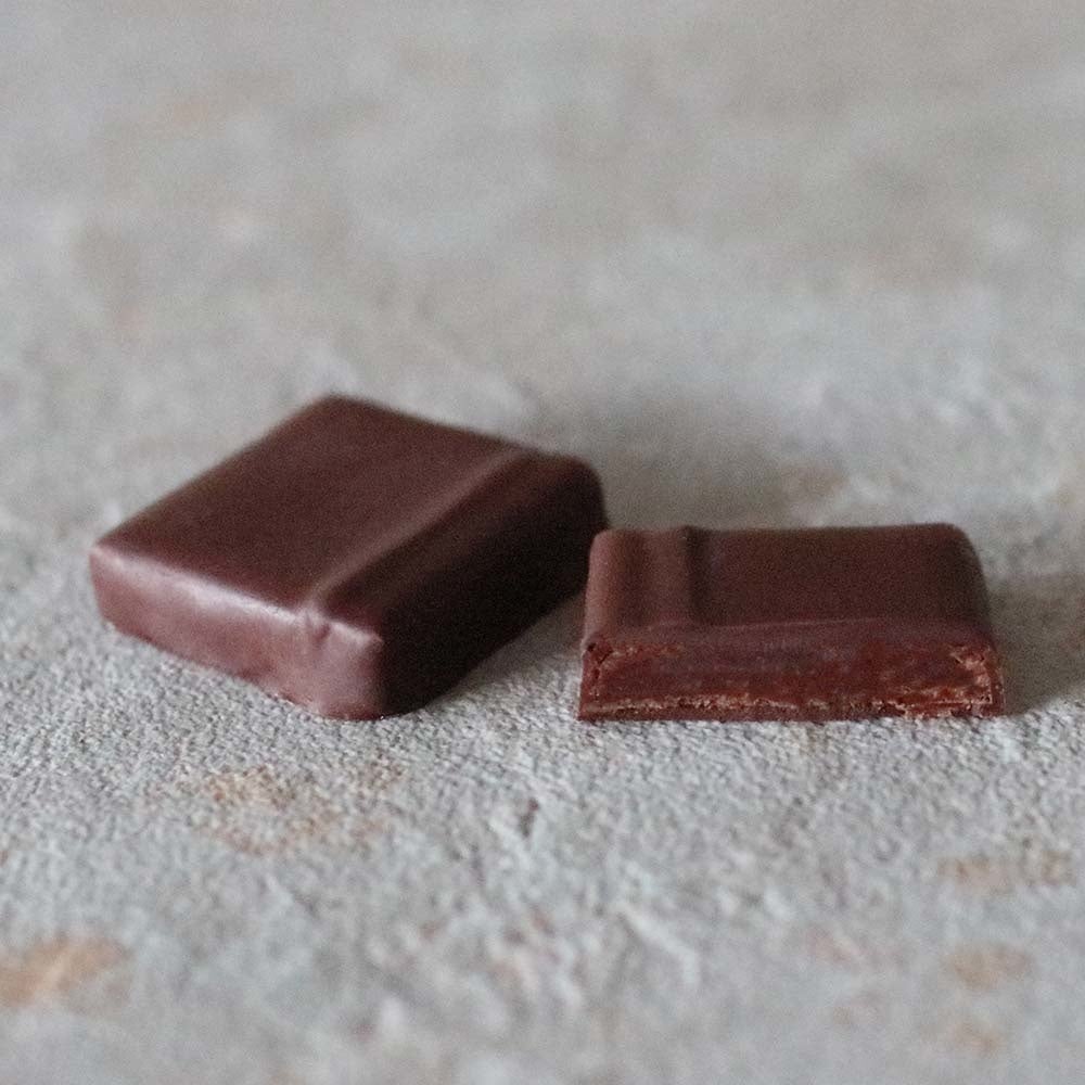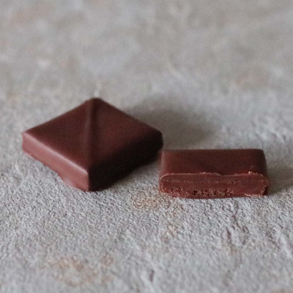 グアテマラのアルタ・ベラパス県にあるカアボンで収穫されたオーガニック・カカオ豆のシングルオリジン・チョコレートを使用したシンプルなガナッシュのボンボンショコラ。