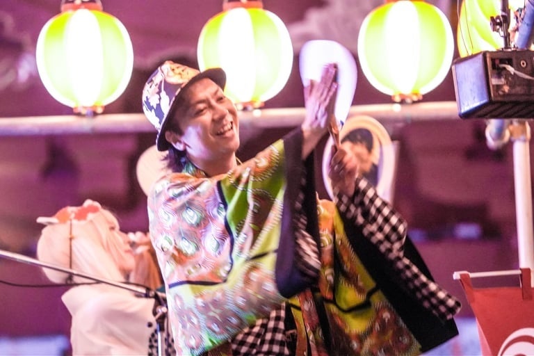 更に【雪山NINJA!BON踊り】の後は、2020年に米ニューヨークのオフブロードウェーの芸能賞「第10回オフブロードウェー・アライアンス・アワード」の「最優秀ユニーク演劇体験」部門にもノミネートされた、カナダ人落語家の桂三輝(かつら さんしゃいん)による、こちらも初の試みとなる、雪上落語の御披露目もあり、雪山×盆踊り× 落語という、前人未到の世界感を創り出します。