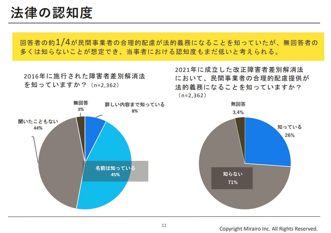合理的配慮の義務化は当事者の間でも認知は高くない