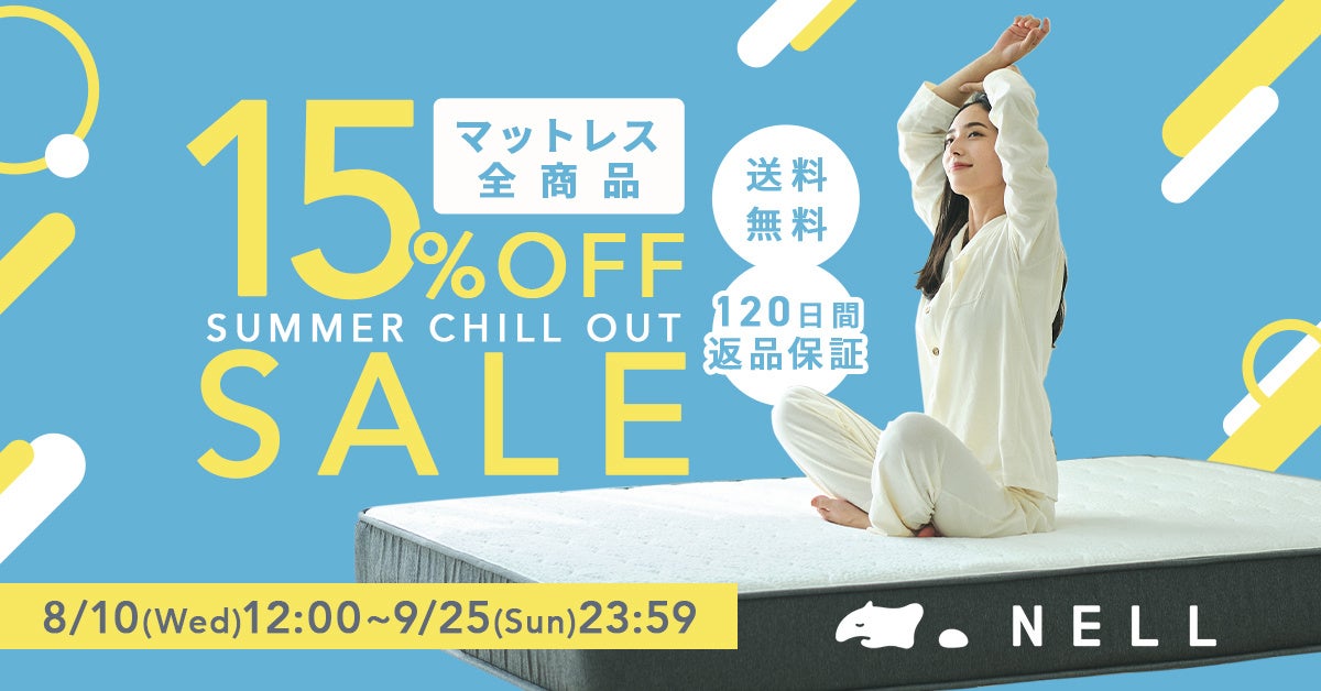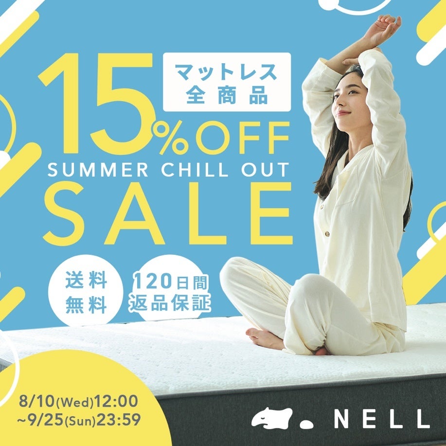 NELLは、からだの痛みに悩む方、快適な寝心地を得られたい方、そして夏の寝苦しさを少しでも解消したい方へ向け、『NELL マットレス』を少しでも手に取っていただきやすくするために「全サイズ15%OFF」となるキャンペーンを実施いたします。もちろん、セール期間中も「120日のトライアル期間」による返金・返品保証を提供いたします。まずはご自宅でじっくり『NELL マットレス』の寝心地をお試しください。