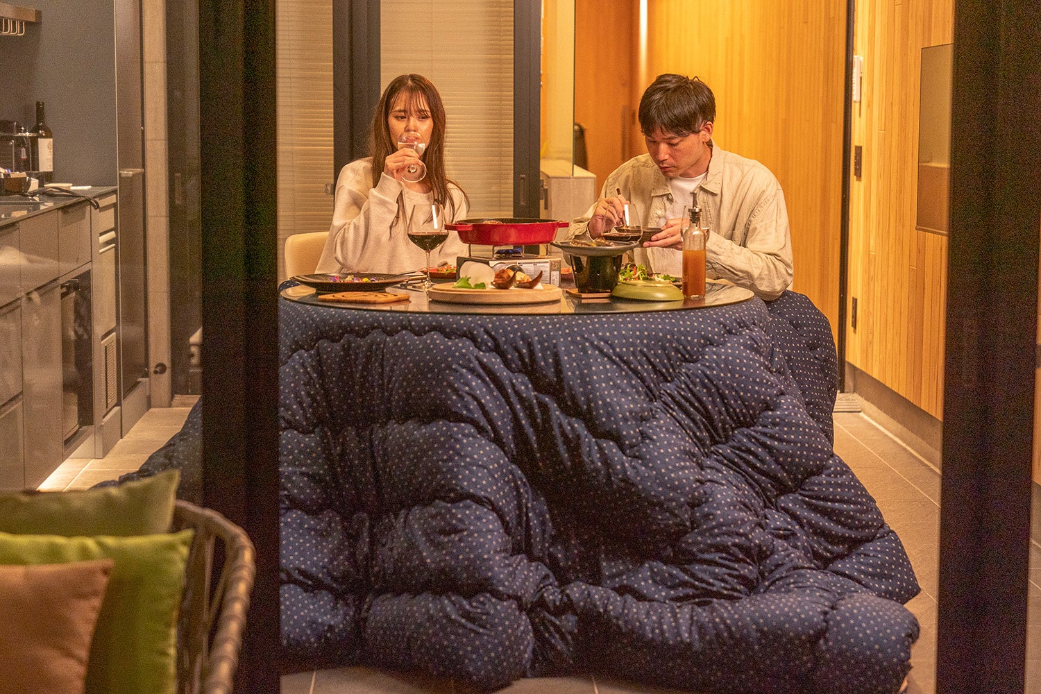 夏の賑わいをひそめた冬の海は、ふたりだけの世界。コンドミニアムスタイルのお部屋には、冬はこたつが登場いたします。寄り添って過ごす親密なひとときもamaneがお届けする冬だけのギフト。お部屋に備え付けの冷蔵庫内には、お部屋に一歩足を踏み入れた瞬間からamane時間をたっぷりお愉しみいただけるよう、ウェルカムオードブルもご用意しております。ご到着後の乾杯はもちろん、おやすみ前の一杯のお供など、お好きなタイミングでお召し上がりください。インクルーシブですので、庫内のソフトドリンクはすべてフリーでご利用いただけます(アルコール類は有料)。大切な方とプライベートなご滞在をゆったりお愉しみいただけるよう、お部屋には必要以外にお邪魔いたしません。大切な方との距離を縮めるぬくもり優しい冬の旅をご満喫ください。