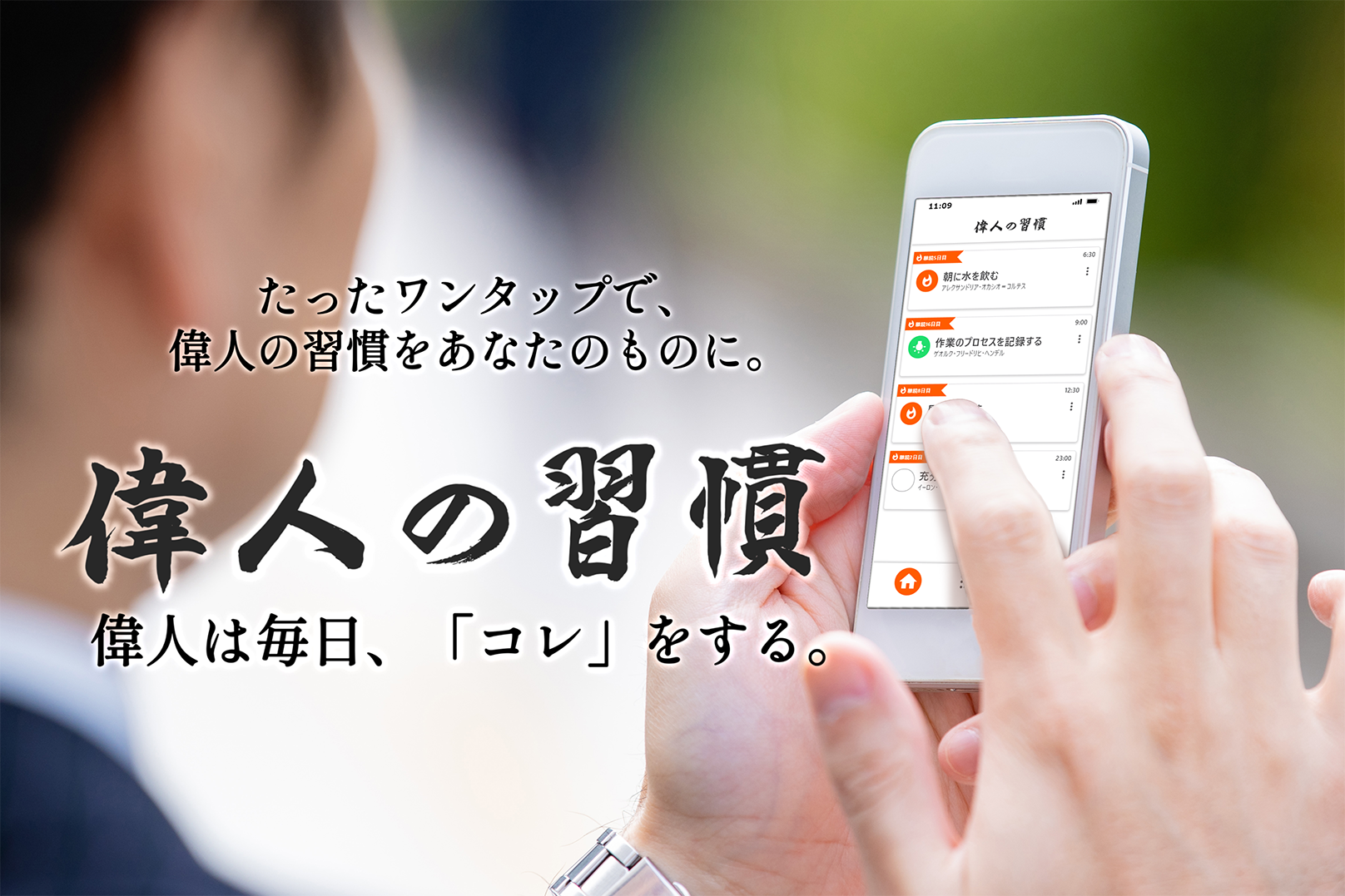 そんな中でも自分を変えたい、日常をより良くしたい、と奮闘しているあなたの努力に寄り添いたいという想いから、「偉人の習慣」アプリを開発しました。