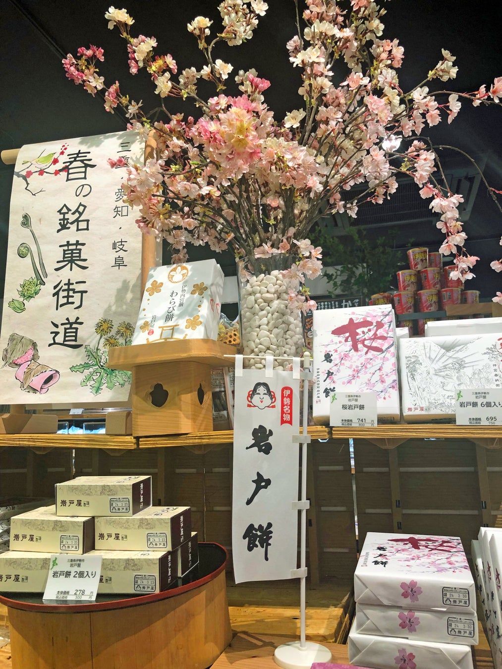 移り変わる四季の植栽が美しい正面棚のシーズンプロモーションは「春の銘菓街道」を開催中。春の訪れを感じさせる桜のディスプレイで演出された売場には、3県の銘菓がずらりと並びます。中でも三重県伊勢市の内宮前に店を構える岩戸屋の銘菓「岩戸餅」は、日本神話にある岩戸神楽の古事にちなんだ由緒ある和菓子です。北海道小豆のこし餡と厳選された餅米ときな粉を使った柔らかい餅はあっさりとした上品な味わい。東京で買えるのは伊勢志摩マルシェのみなので、店頭で見かけたらぜひお試しいただきたい。3月23日(土)には岩戸屋スタッフによる店頭販売も行います。お買い物をしながら、明るく気さくな生産者とのコミュニケーションもお楽しみください。