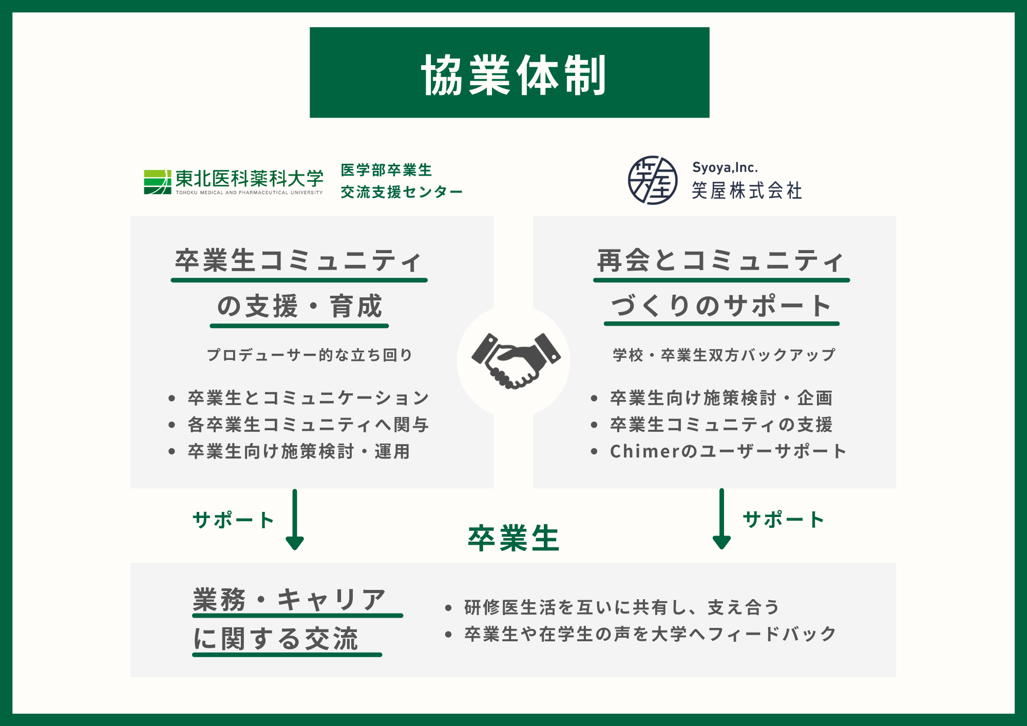 二者の協業により、卒業生と在学生をサポートしていきます。
