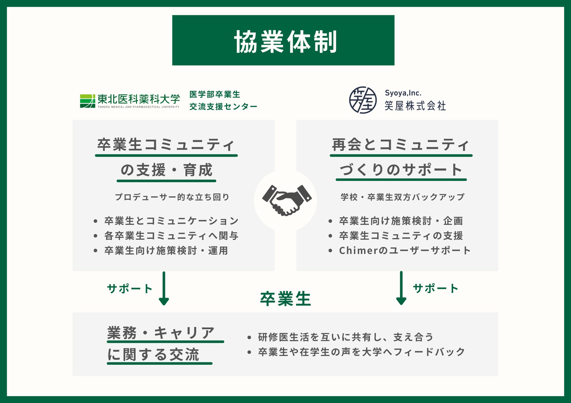 【東北医科薬科大学 × 笑屋】医学部卒業生交流支援センターのプラットフォームに「Chimer」の導入を決定