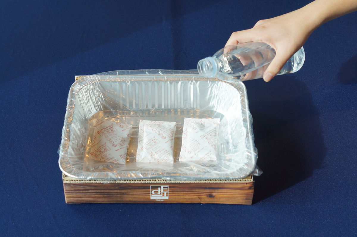 ③発熱剤に水をかける