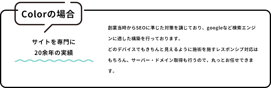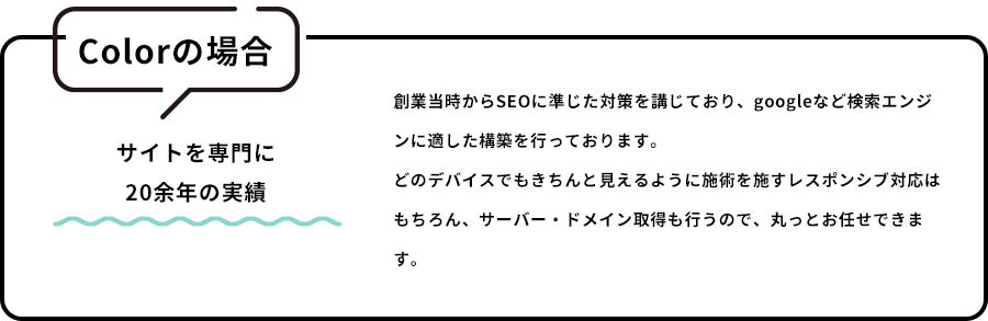 またColorは長くサイト制作に携わっているため、検索エンジンに適したサイト構築を行います。