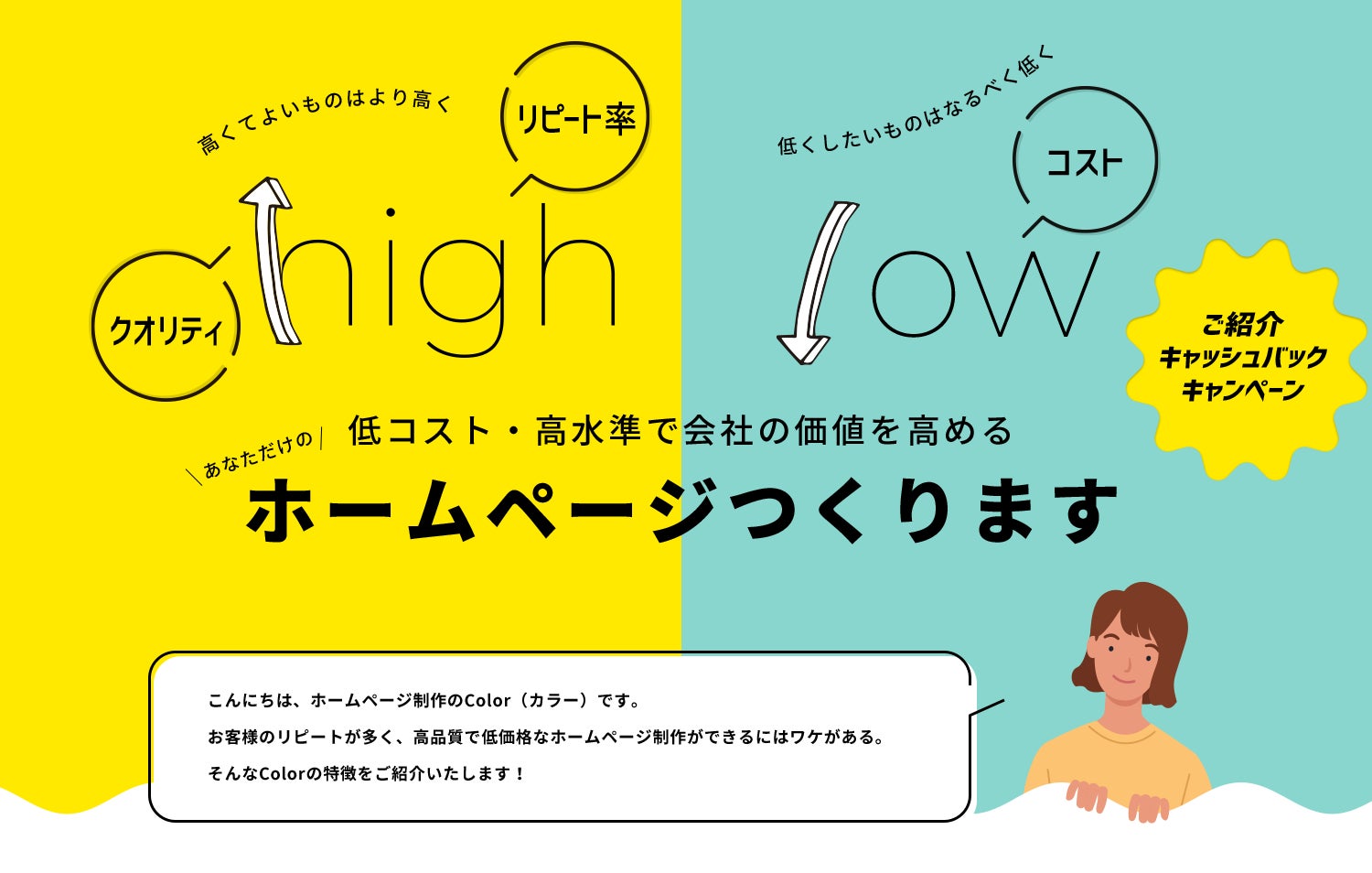 株式会社Color(本社:東京都、代表取締役:石水朋哉)が新たにサイト制作サービスを開始。お客様のリピートが高く、高品質で低価格をお約束。20年の実績があるからお客様のご予算に合わせたベストなHPをご提案できます。新たなサービスとしてコミコミの親切なパッケージもご用意!ただいまキャッシュバックキャンペーン中!ご利用されたお客様でサイト制作案件をご紹介いただける場合、売り上げの10%をキャッシュバック!