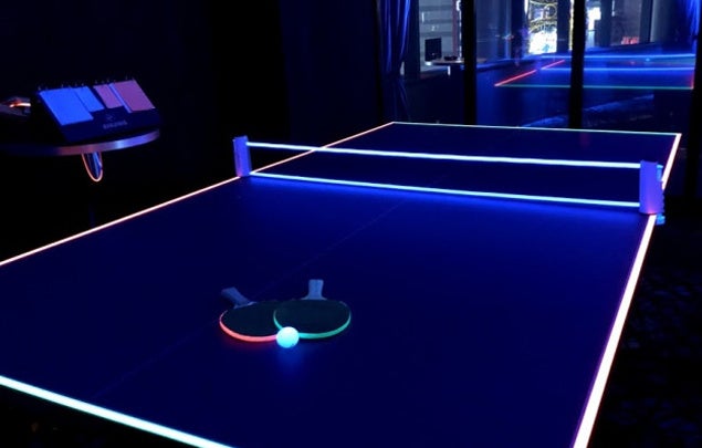 流行のダーツやビリヤード・シミュレーションゴルフ・バスケットボールなど、数多くのアミューズメントコンテンツを お酒やお食事の合間にお遊びいただくことができます。中でも、『BeeRUSH』オリジナルの「コズミック卓球」は光るラケットや球を使った非日常感で人気を博しています。