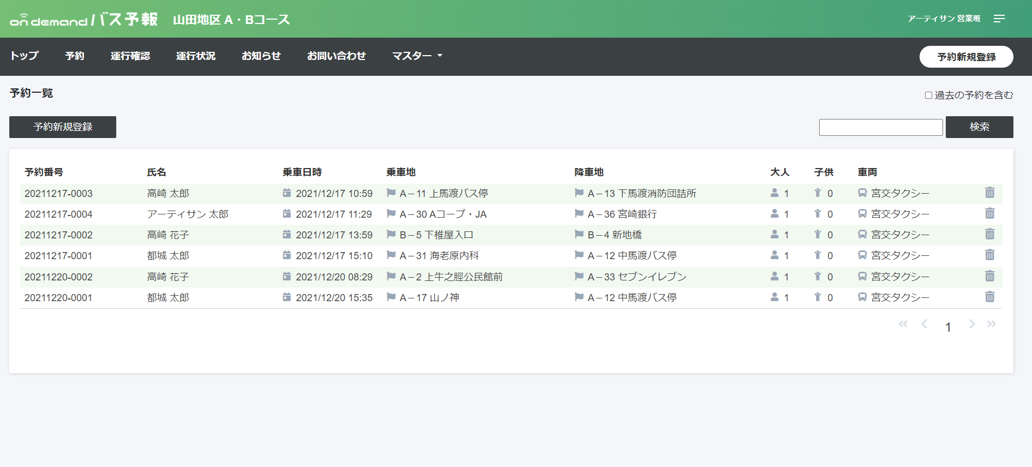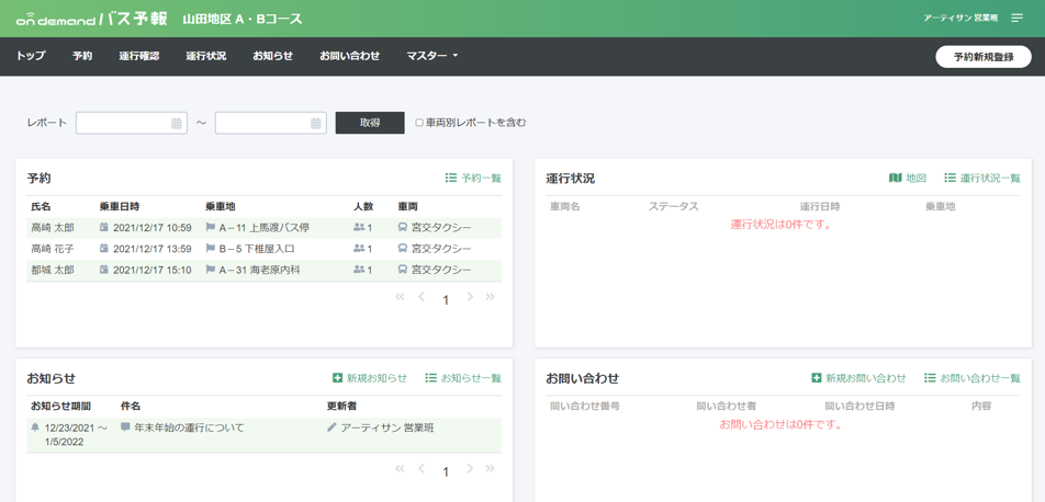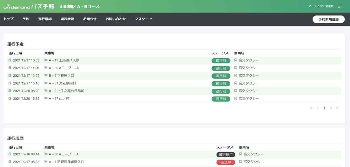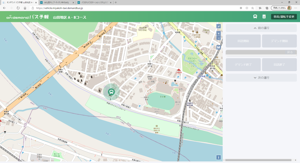 - 運転手の方が予約や運行の確認を行う「車載サイト」