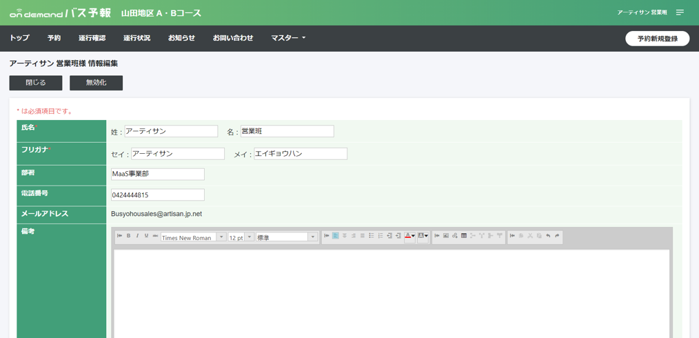 ・事業者側の電話オペレーターの方はもちろんのこと、パソコン操作に不慣れな方や、高齢の運転手の方でも直感的な操作が可能な Web アプリケーションとなっている。