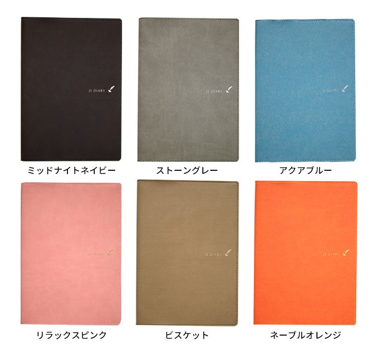 ESダイアリー時代から引き継いできたカバー素材を一新。ソフトな手触りとふんわりとした質感が魅力のPUフェイクレザーへ変更いたしました。昨年好評だったカラーバランスはそのままに、新たに「ミッドナイトネイビー」「ストーングレー」「リラックスピンク」「ビスケット」「アクアブルー」の5色展開へ。