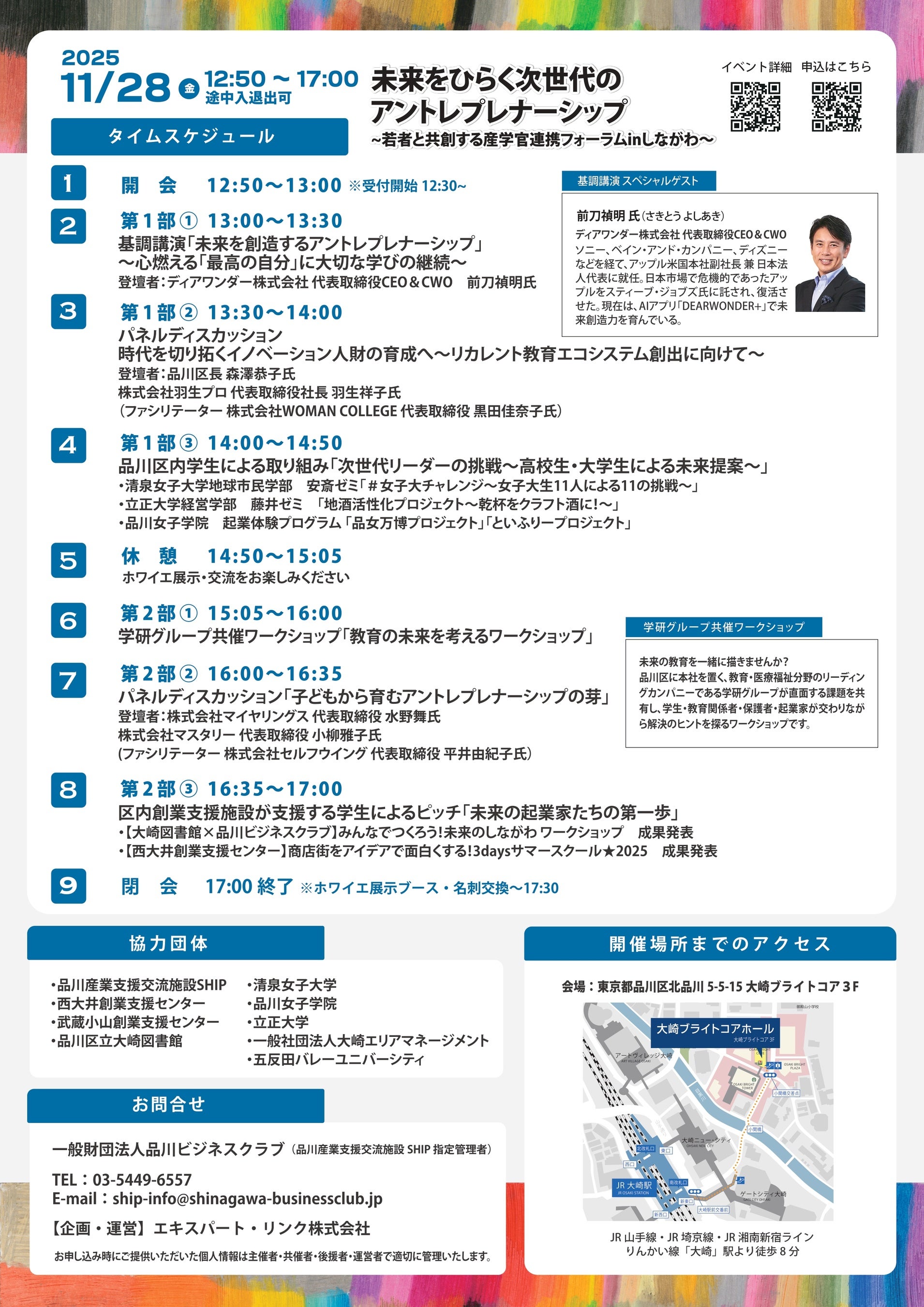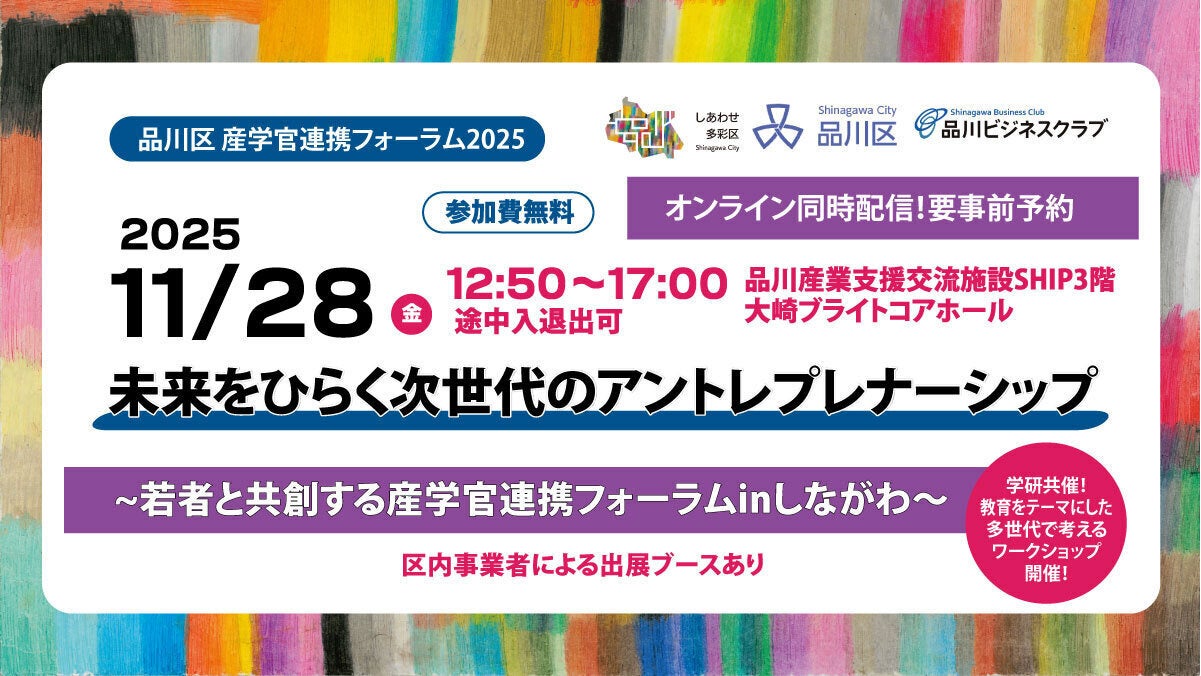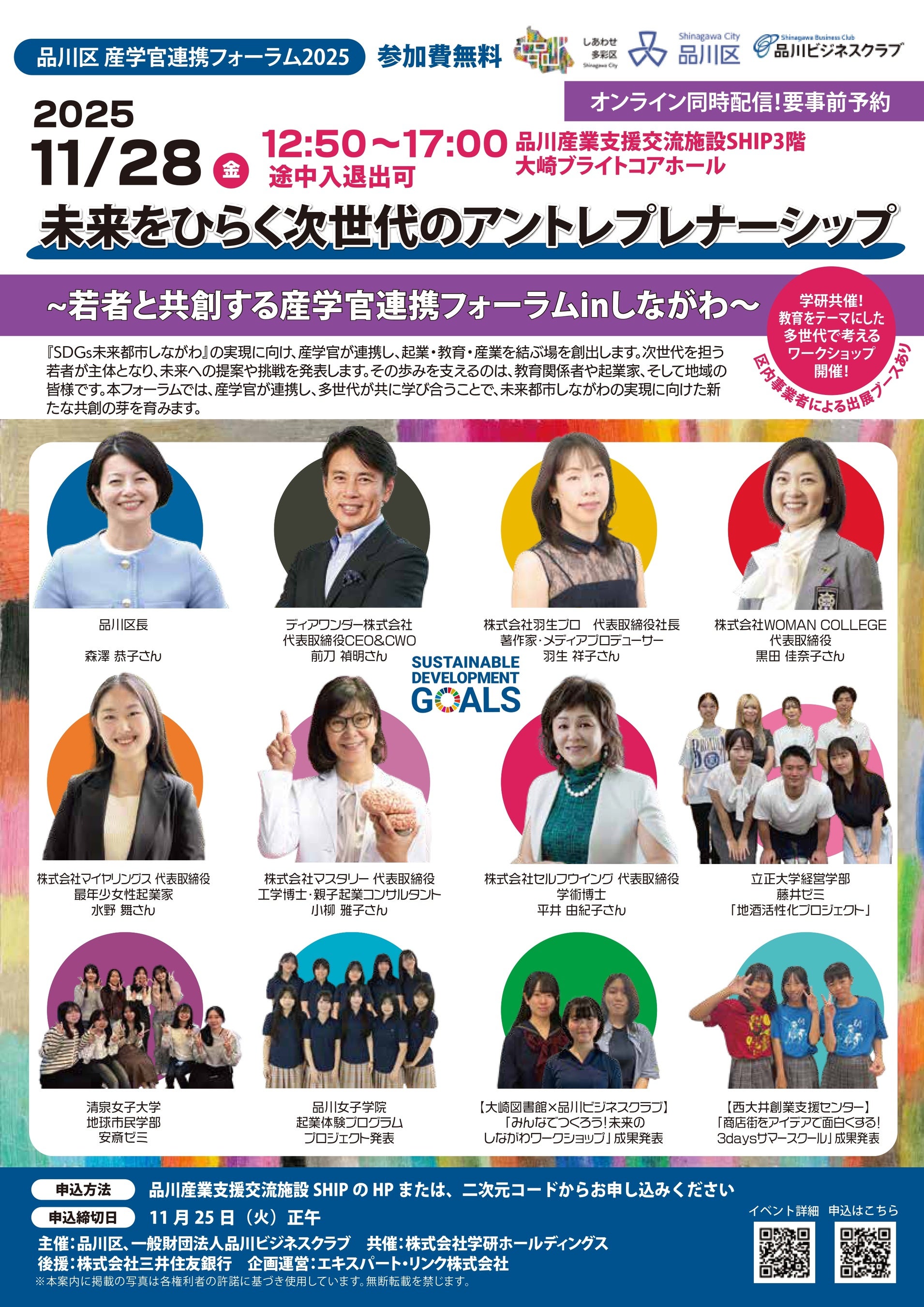 未来をひらく次世代のアントレプレナーシップ~若者と共創する産学官連携フォーラムinしながわ~ 【品川区産学官連携フォーラム】「起業×教育×産業」をテーマに各世代や立場のリーダーが集う!