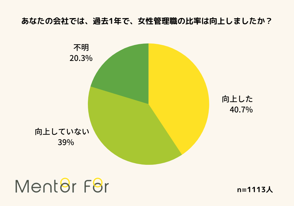 過去1年で「女性管理職の比率が向上した」企業40.7%