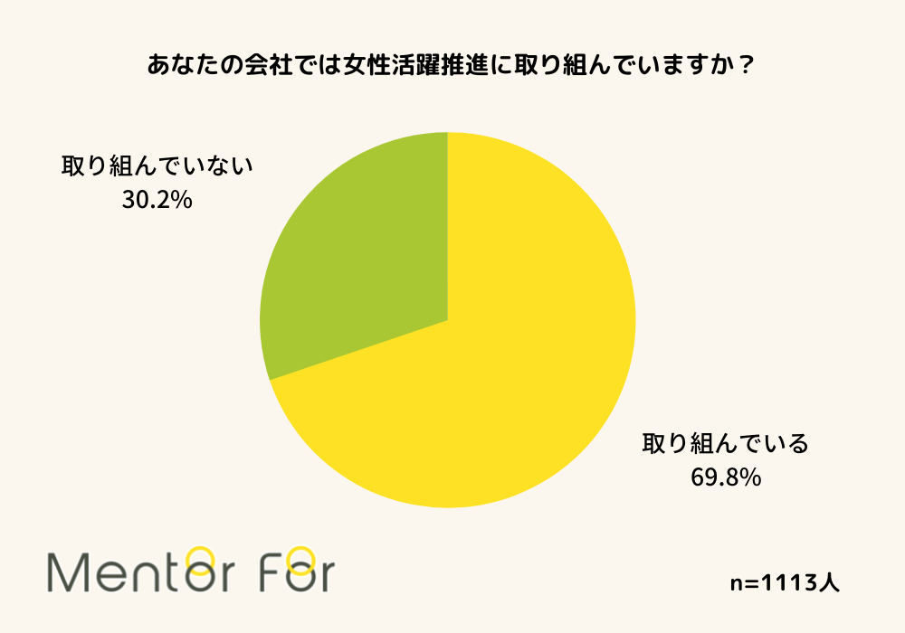 女性活躍推進に「取り組んでいる」と回答した人事・ダイバーシティ担当者は69.8%に達しました。女性活躍推進と企業が向き合うことは、スタンダードになりつつあることがわかります。