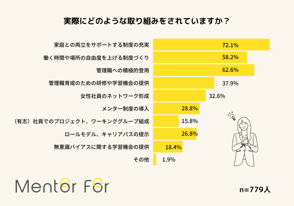 ※本アンケート調査結果を引用の場合は「株式会社Mentor For 『女性活躍推進に関するアンケート調査』(2022年3月)」を引用元として記載いただきますよう、お願いいたします。
