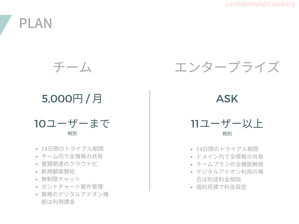 - [料金] 月額5,500円(税込み) ※主な3つの機能が制限なく利用できます。(10ユーザーまで)