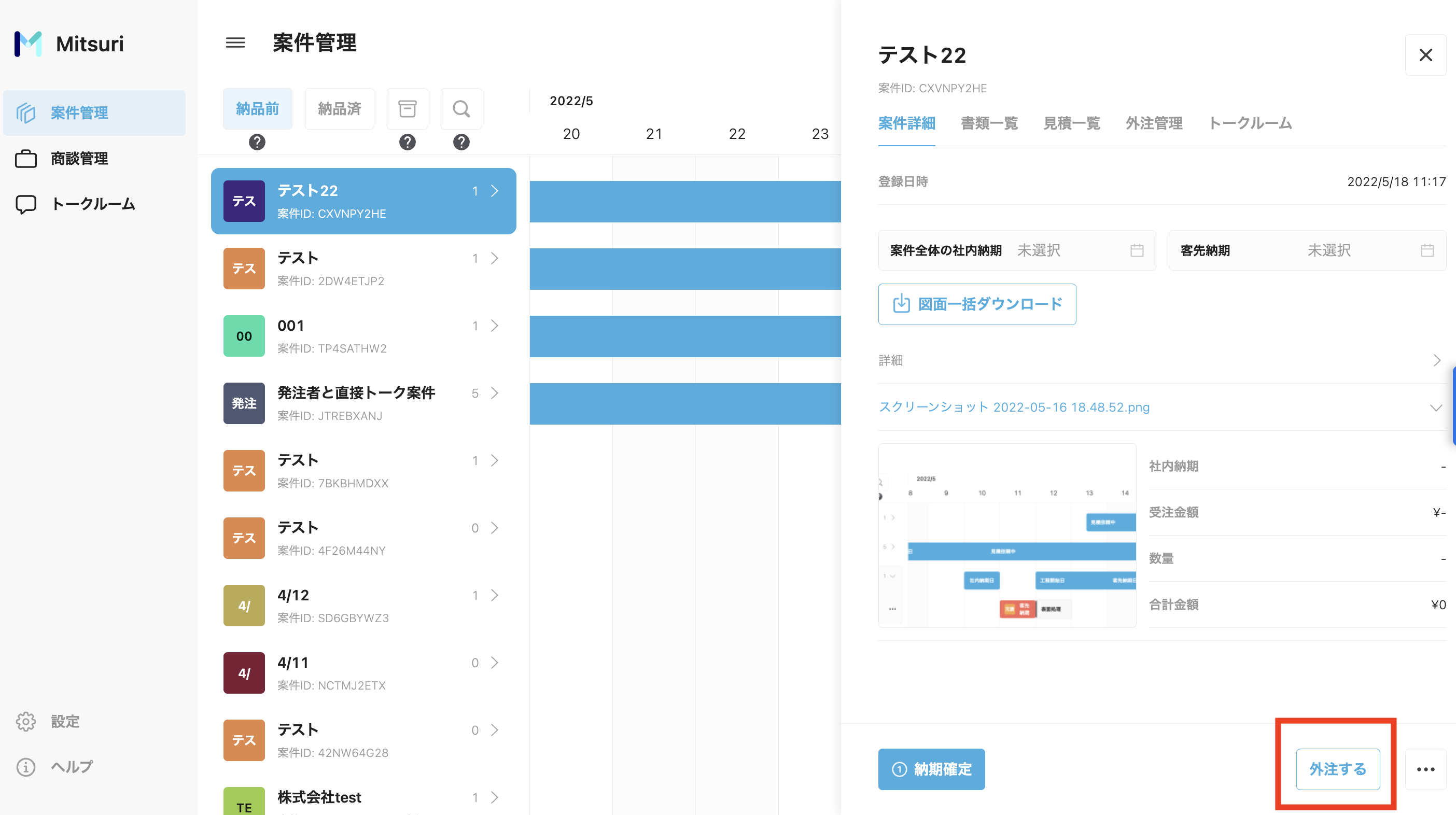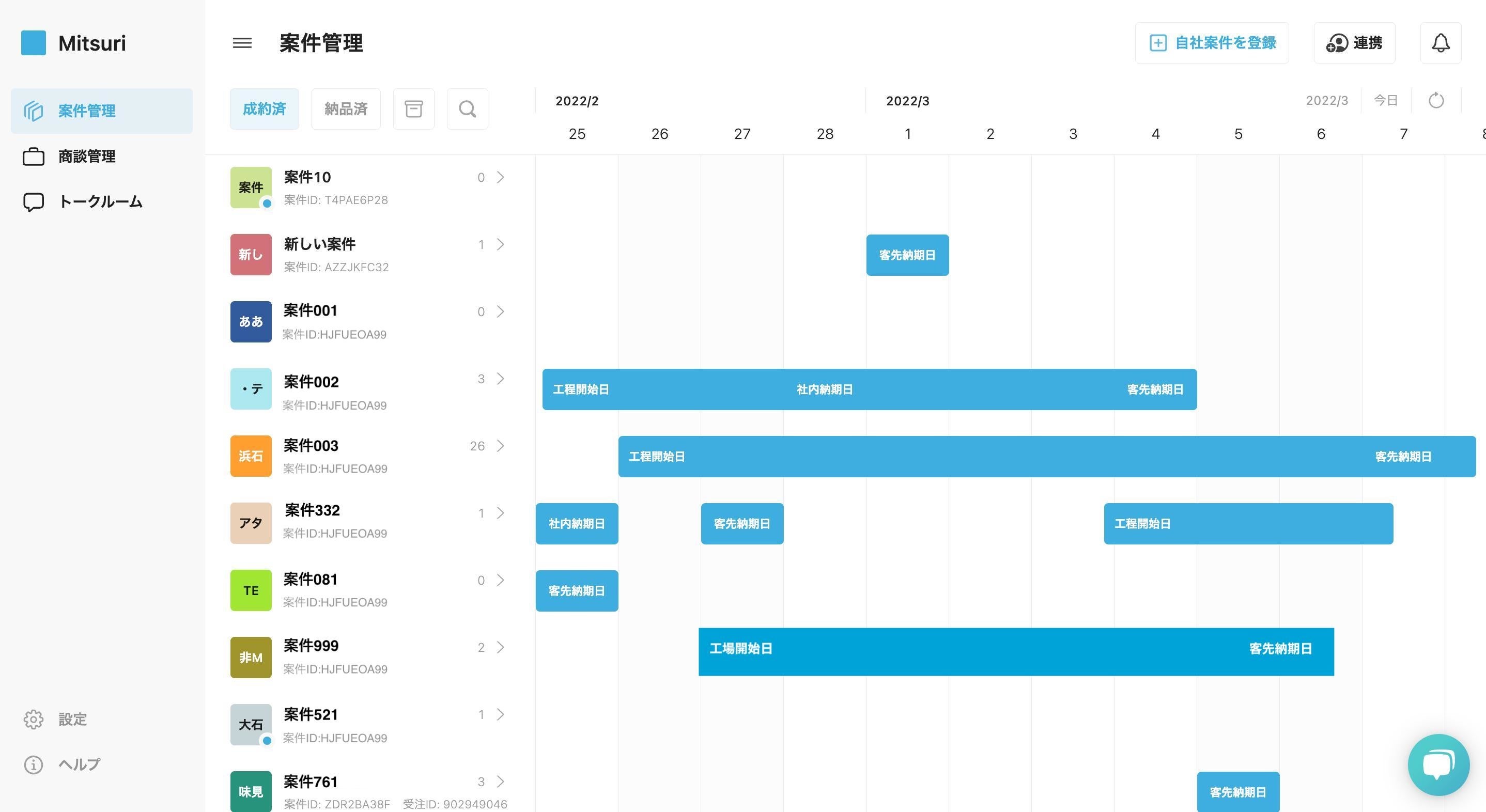 マッチングした企業との書類や図面情報は全て案件ごとに自動生成し、格納します。