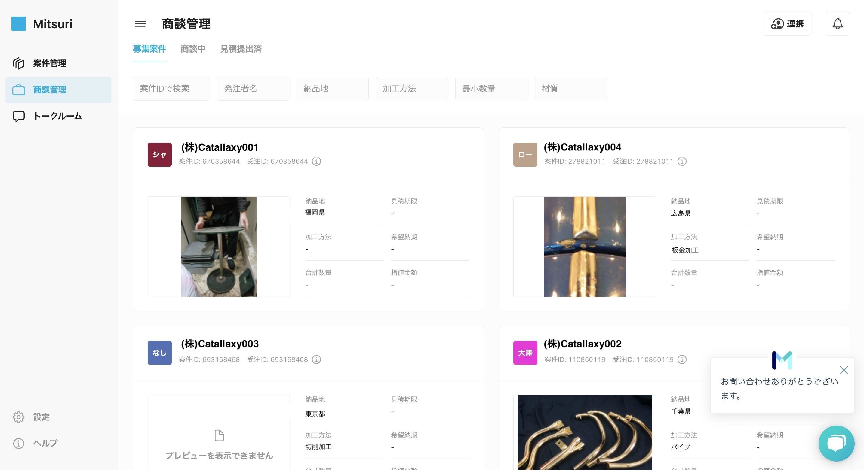 金属部品調達のデジタルサプライチェーンを推奨する「Mitsuri」のサービス利用料金が改定に。製造業界におけるDX参加企業を増やす意向