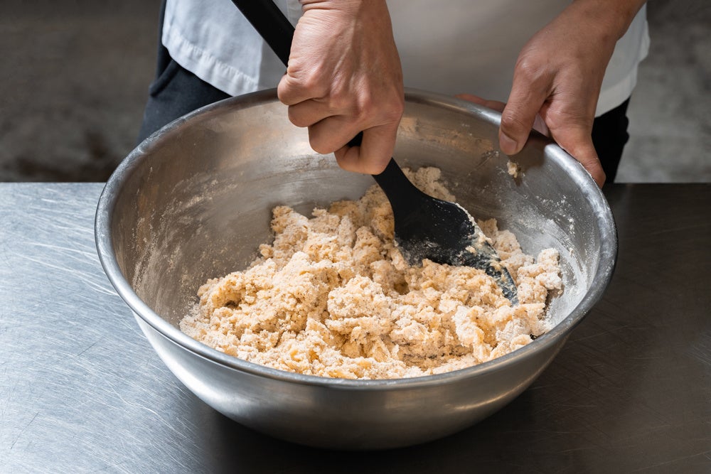 ヘラの内部の芯材は、包丁と同じ焼入れを施しています。これにより、硬さと弾性が引き出され、衝撃や曲げに強い構造になっています。バター生地など固さのある生地でもしっかりと混ぜることができます。