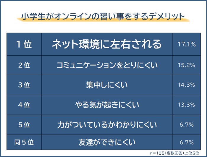 【小学生がオンラインの習い事をするメリット・デメリットランキング】ママ・パパ105人アンケート調査