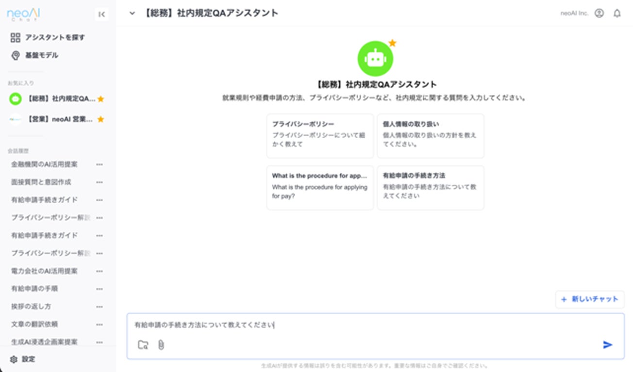 neoAIでは、これまで金融機関や電力会社などエンタープライズ企業を中心に、企業が保有するマニュアルや各種資料などの社内データを、RAGを用いてLLMに読み込ませる生成 AIプラットフォーム「neoAI Chat」を提供してきました。