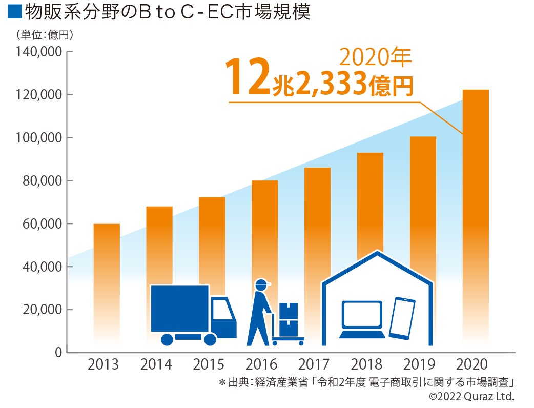 コロナ以降、巣ごもり需要の増加により物販系B to C-EC市場規模は12兆2300億円超*(前年比21%増)へと大幅に拡大。生活家電や衣類、雑貨等のECによる購買ニーズが上昇を続ける中、それに伴い購入商品の保管場所としてのトランクルーム需要も高まりを見せています。