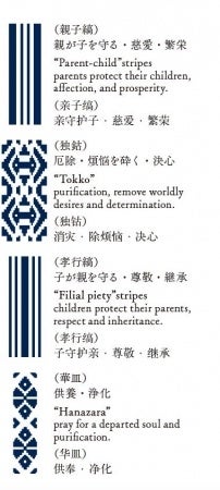 太い縞が細い縞を挟むように配された縞で「親が子を守る」という意味があります。慈愛・繁栄を表現。
