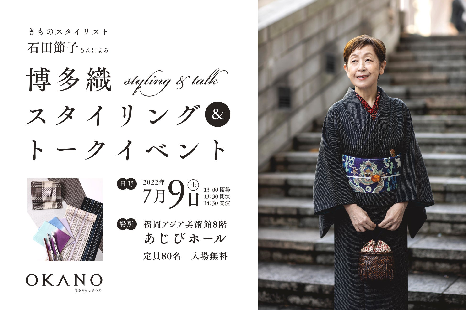 弊社は数少ない博多織元として、博多織の伝統的な柄や歴史を伝え繋ぐとともに、きものをファッションとして伝えていくための事業展開をしています。この度は、きものスタイリスト「石田節子氏」をゲストに迎えて、博多織のスタイリングを提案。博多織(きもの・帯)の特徴や良さを通して、地元福岡のきものファンは元より、これからきものでお洒落をされたい方に幅広く知ってもらうイベントを開催します。